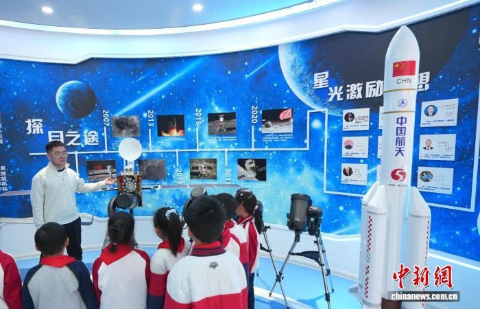 3月2日,4川成皆,成皆7中始中隶属小教教死正在黉舍航天馆领略星球飞碟。当日是成城市中小教秋季教期正式止课的第1天。中新社记者 安源 摄